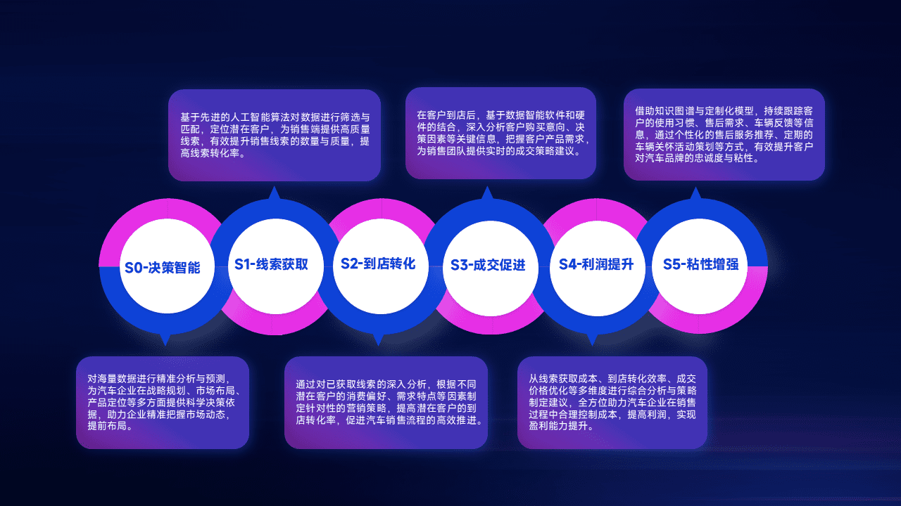 通过拓宽潜在客户来源、、、、优化线索分配并提高到店转化率,,以增强销售效率。。同时,,利用线索数据不断优化分析模型,,,有效提升转化率,,,,扩大营销影响力。。。。